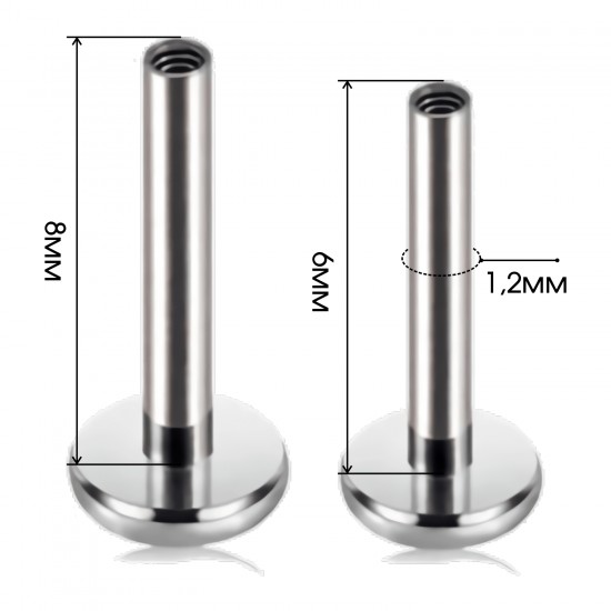 Длина штанги 6 мм (для регулярного ношения) или 8 мм (для первичного прокола). Диаметр основания 3 мм. Размер декоративной части 15,5мм х 7,6мм.